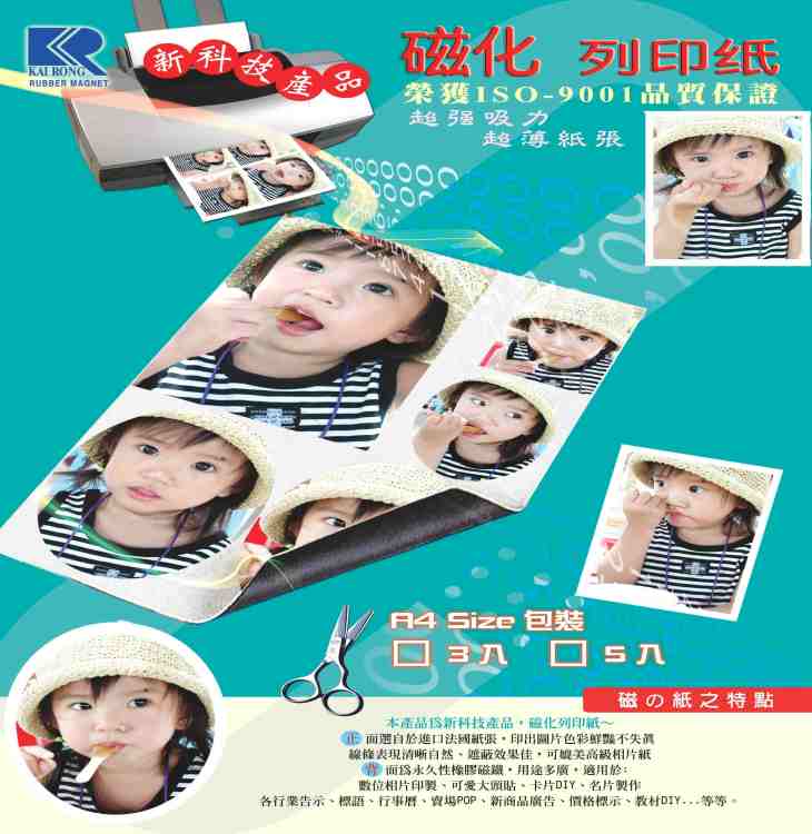 (2) 精緻永久橡膠磁鐵與進口法國紙張、相片紙張結合。